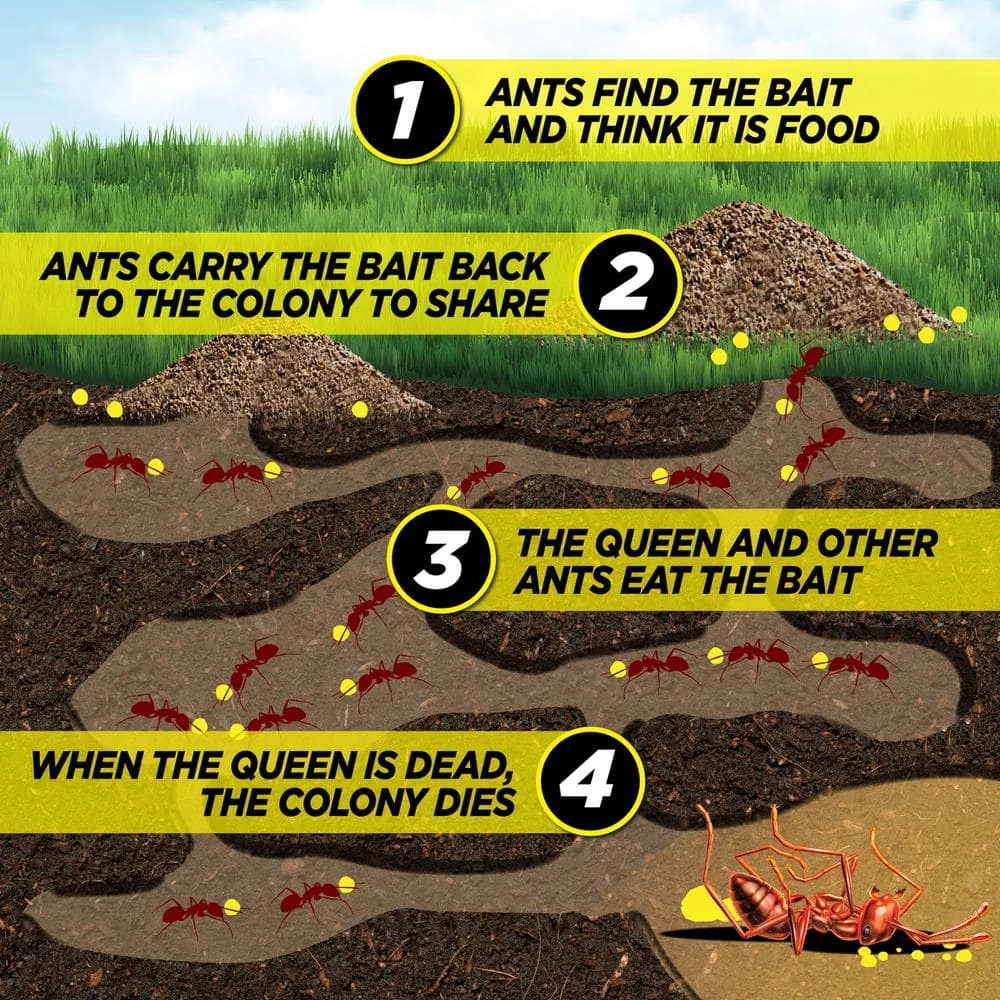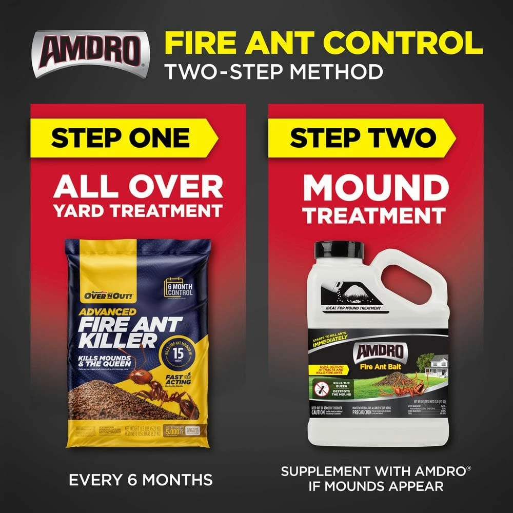 The AMDRO Fire Ant Killer Bait kills the queen fast and destroys the fire ant mound. Once you distribute a circle of fire ant bait around the mound, it is only a matter of time before the worker fire ants share it with the queen. After the queen eats it and dies, her colony dies with her. The ant granules are designed for individual mound treatment but can also be used for broadcast application in outdoor areas, for total ant control.