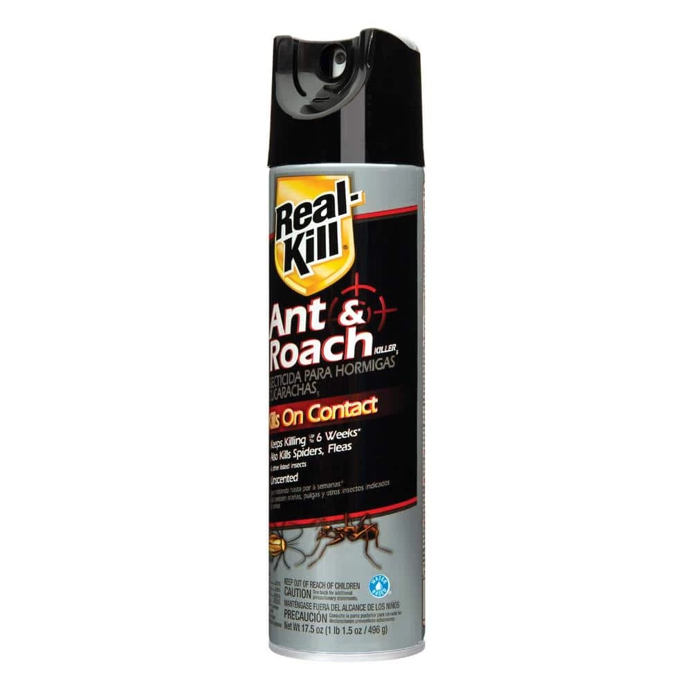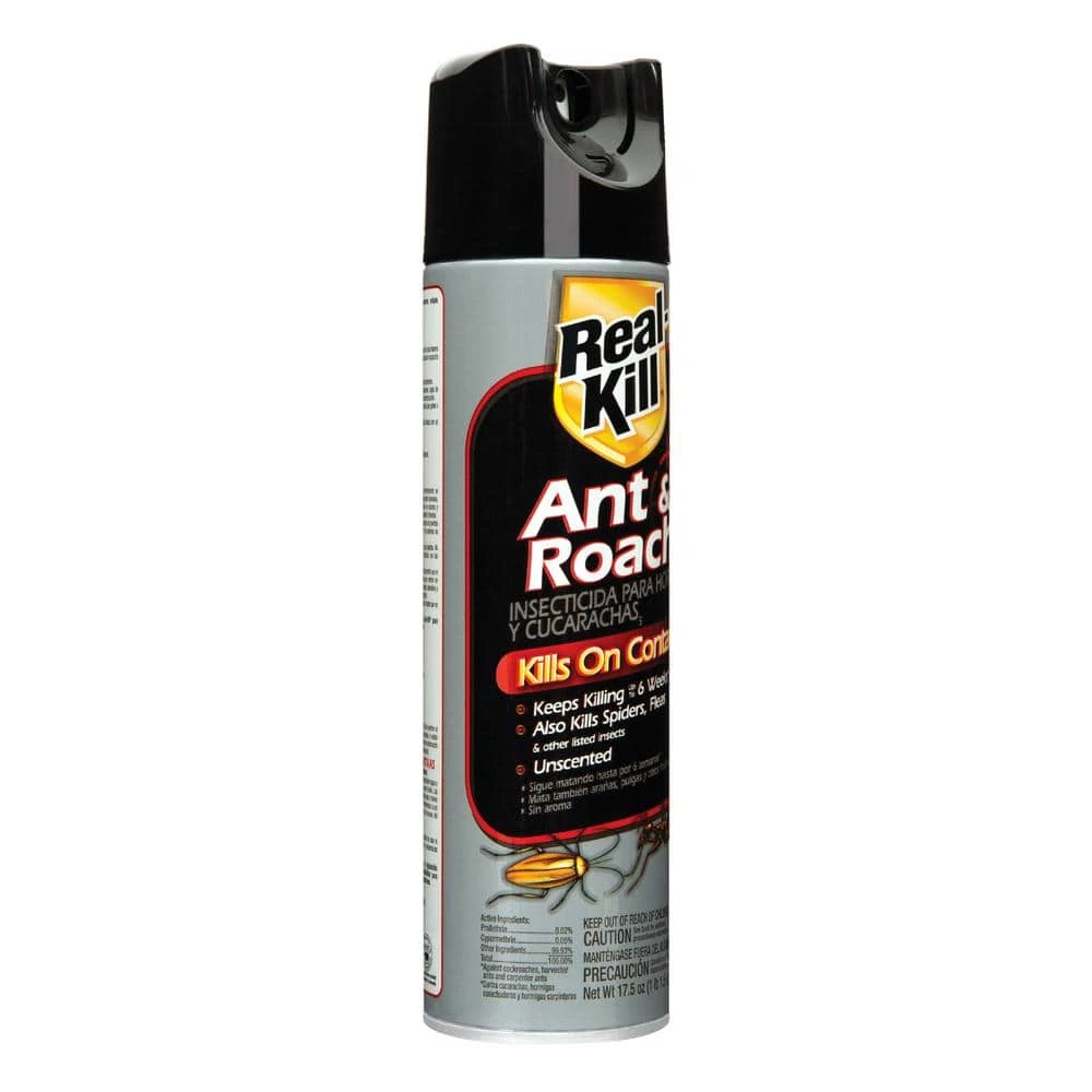 Real-Kill 17.5 oz. Ant and Roach Killer Aerosol controls ants, roaches, spiders, crickets, firebrats, silverfish, fleas, ticks, earwigs, flies and mosquitoes. It stays on treated surfaces and provides residual insect killing power for up to 6 weeks. The unscented formula is great for controlling insects indoors. It can also be used outdoors on non-crop areas.