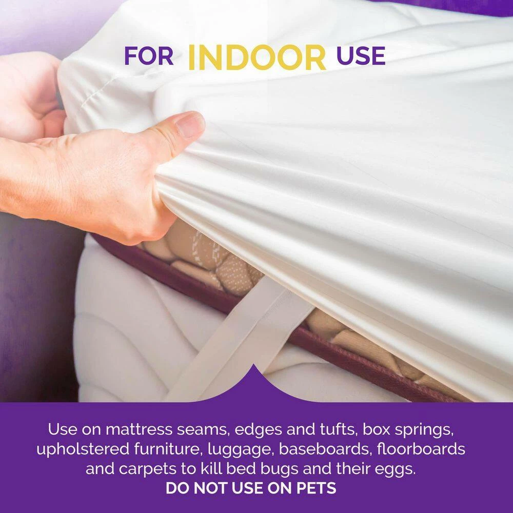 - For indoor use: for use on mattresses, wood furniture and carpet, this product can also be used on bed frames, headboards, floors, moldings, ceiling and walls
