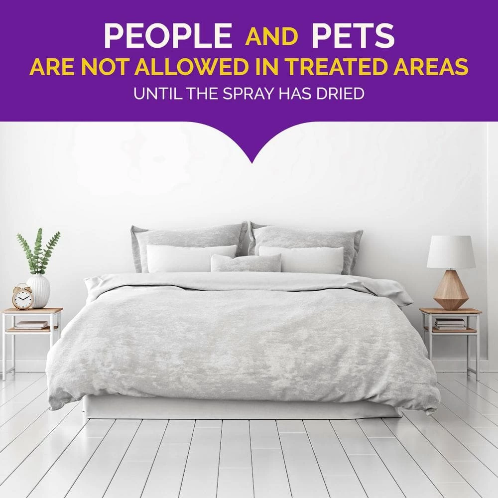 - APPLICATION: Spray intended use areas until damp, but do not saturate – inspect the area and apply every two weeks while bed bugs are present.