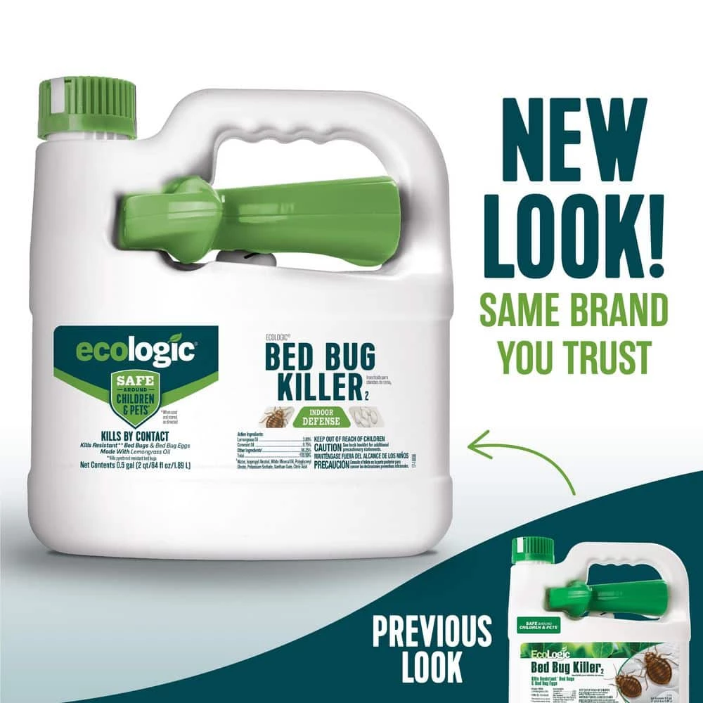 You should know what you’re spraying in your home. With EcoLogic pest control products, what you see is what you get – all ingredients are listed on the label. EcoLogic products deliver alternatives to traditional pesticides that homeowners can feel confident about using. Our formulations are proven effective in the home, lawn and garden and are safe for use around kids and pets, when used and stored as directed.EcoLogic Bed Bug Killer2 kills pyrethroid-resistant bed bugs and bed bugs eggs. This product also kills fleas. Apply as a spot treatment to cracks and crevices around baseboards, floorboards, bedboards, carpet edges, furniture and walls; bed frames, mattresses and box springs; corners and pockets of luggage. EcoLogic Bed Bug Killer2 is made with lemongrass oil and cornmint oil and kills by contact. Do not spray humans or pets with this product. Do not apply this product to stuffed animals or toys. Always test an inconspicuous sample of fabric, rug, flooring or painted/stained surfaces for discoloration before use.