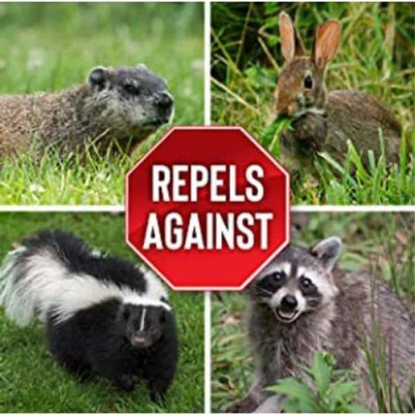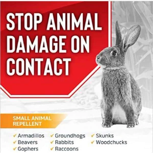 - Small animal repellent- this highly effective solution is ready to use and repels armadillos, beavers, gophers, groundhogs, rabbits, raccoons, skunks and woodchucks