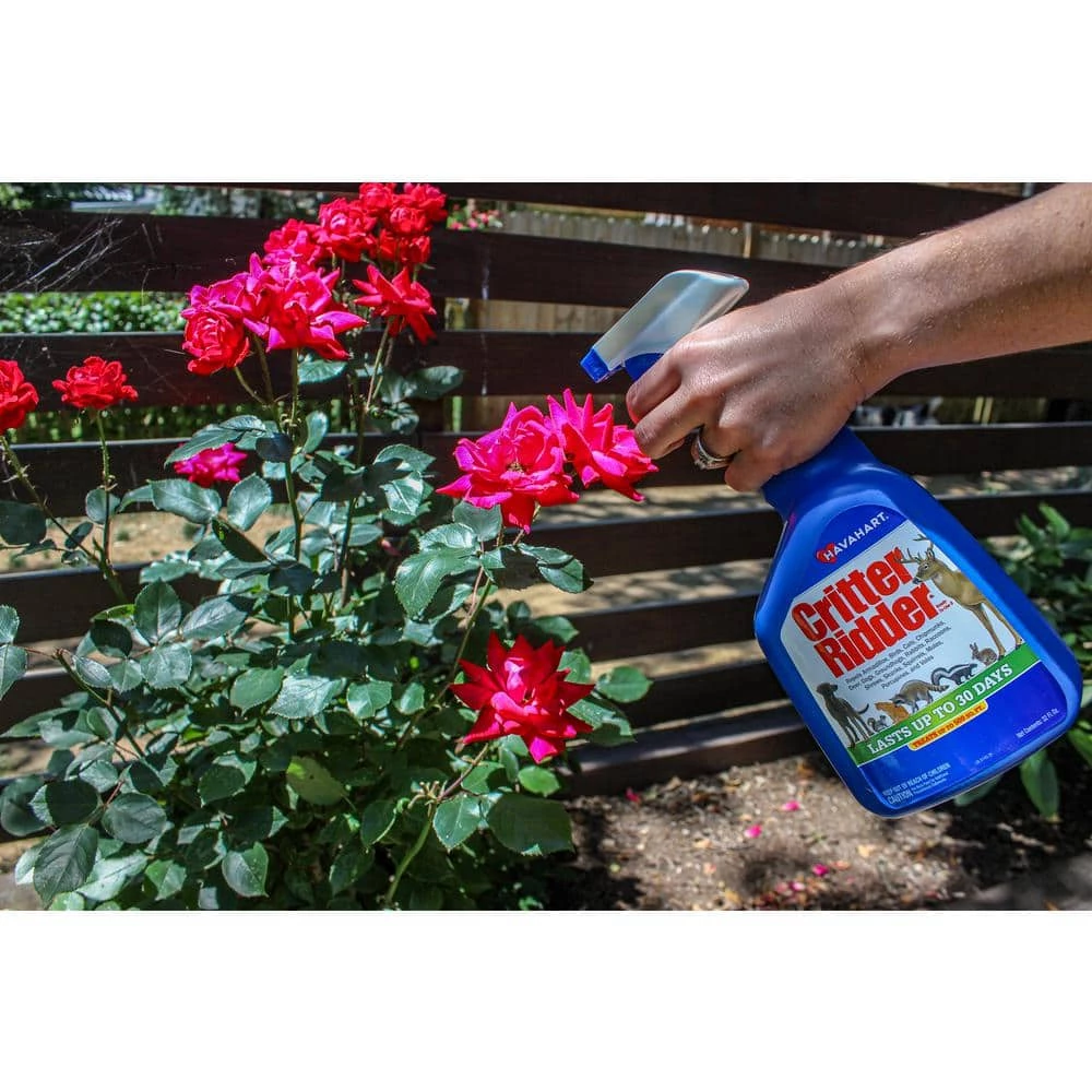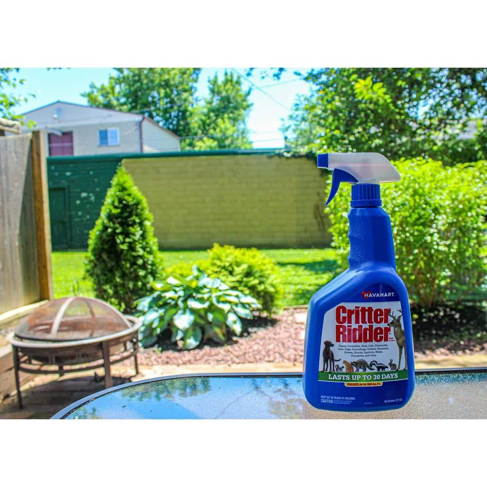 Protect your yard and garden from animal damage with Critter Ridder Animal Repellent. Critter Ridder is a unique, long-lasting formula containing active ingredients that irritate animals when they smell or taste the product. These scent and taste deterrents create an unpleasant environment for animals, causing them to find food and shelter elsewhere. This product can be used to effectively repel armadillos, birds, cats, chipmunks, deer, dogs, groundhogs, rabbits, raccoons, shrews, skunks, squirrels, moles, porcupines and voles. Use it to protect garden areas, flowers, shrubs, plants and more. Just one application of this unique animal repellent protects up to 500 sq. ft. and provides up to 30 days of protection.