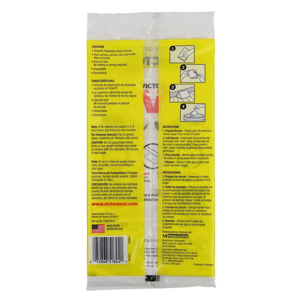 The Victor Mouse Glue Board is a highly effective mouse control device designed to trap and hold mice and insects on contact. The disposable tent design hides the pest and prevents your pets from contacting the glue. Easy to use and pre-baited with a synthetic peanut butter scent, each mouse trap has a large glue surface proven to catch and hold even heavy rodents. This high-quality glue board mouse trap requires no setting – just place and catch. The mouse trap catches the rodent with lock-tab tents that hide mice, making disposal quick and easy.