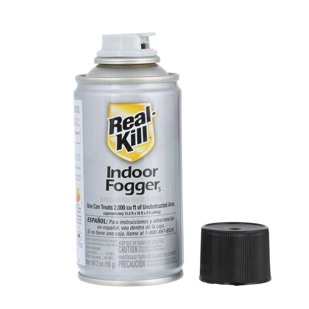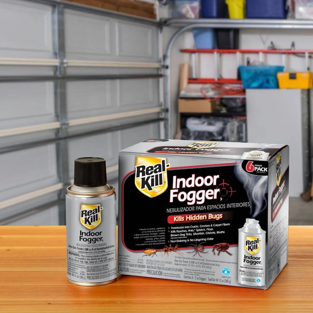 Real-Kill Indoor Fogger penetrates into cracks, crevices and carpet fibers to kill hidden bugs. This non-staining formula kills ants (excluding red imported fire ants and pharaoh ants), black carpet beetles, brown dog ticks, crickets, earwigs, firebrats, fleas, palmetto bugs, pillbugs, rice weevils, roaches, saw tooth grain beetles, silverfish, spiders, waterbugs and other listed insects. One fogger can treats up to 2,000 cubic feet of unobstructed indoor area (approximately 15.5 feet x 16 feet x 8 feet ceiling) and leaves no lingering odor. Real-Kill Indoor Fogger is ideal for use in apartments, attics, basements, cabins, garages, homes and pet sleeping areas. The water-based formula has no lingering odor, and when it is used as directed, it is non-staining and won’t harm your furniture or fabrics. Read entire label before use. This box contains 6 2-ounce cans.