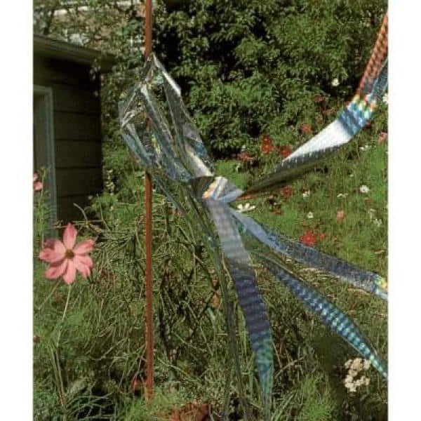 Holographic bird ribbon drives away birds humanely. Irri-Tape bothers all of a bird’s senses. As a visual scare, birds are scared by the material’s sheen, as the light causes constantly changing 3-D colors and images. As a sound scare, birds are rattled by the noise Irri-tape makes as it blows in the breeze. Use for pigeons, sparrows, starlings, crows, blackbirds, grackles, seagulls, swallows, woodpeckers, ducks, geese, and more. Ideal for yards, gardens, rooftops, parks, ponds, boat docks, private beaches, patios, balconies, any open outdoor area or any semi-enclosed area with access to light and wind. Holographic ribbon is a full 2 in. wide and 100 ft. long. Hang in small strips. Brackets for mounting above ledges or railings included.