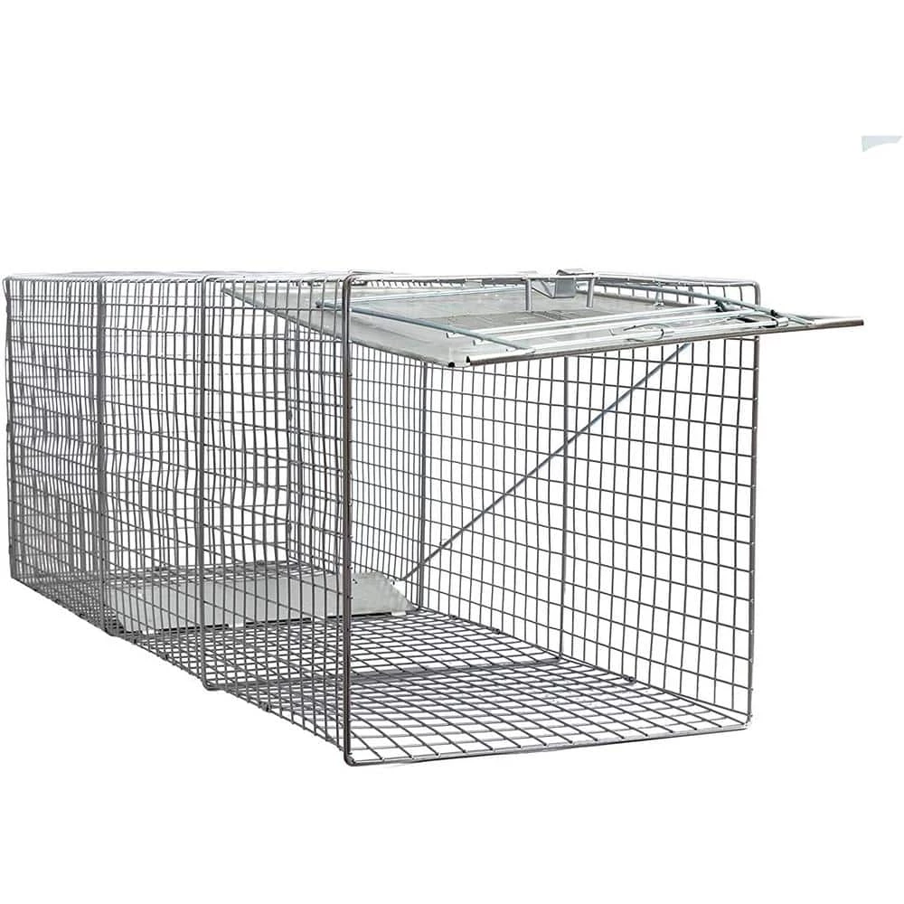 - Large fully assembled, ready-to-use catch and release animal trap, 42 in. x 15 in. x 15 in.
