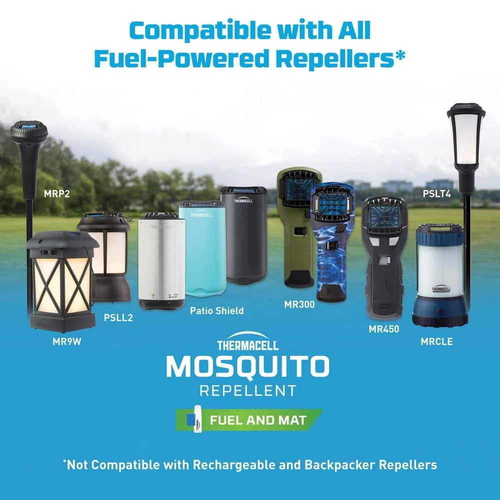 This Thermacell Mosquito Repellent Refills (16-Pack) contain 4 butane cartridges and 12 repellent mats. Each cartridge works for up to 12-hours to provide a total of 48-hours of repelling power. They will repel mosquitoes, black flies and no-see-ums so you can enjoy your outdoor activities.