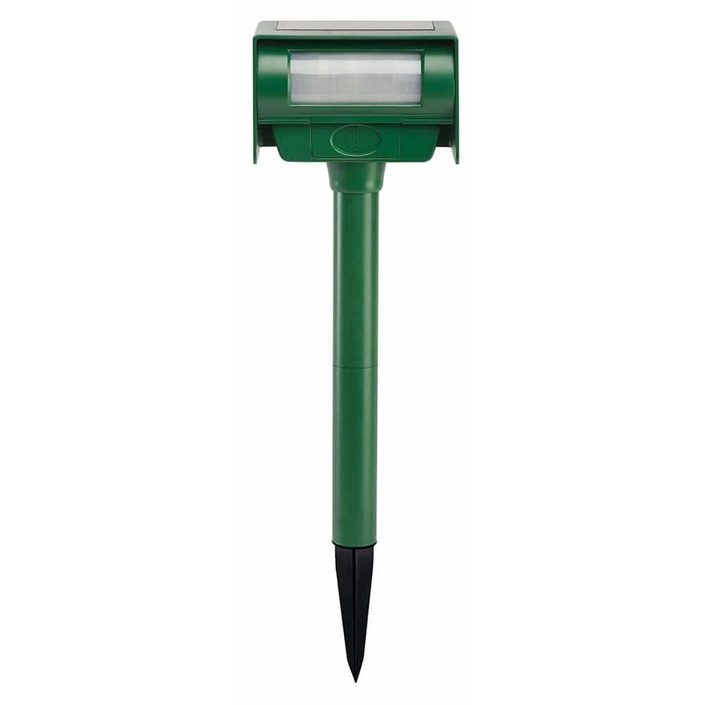 Keep annoying, dangerous and garden destroying pests out of your yard for good with the As Seen on TV, Motion Activated Ultrasonic Solar Powered Animal Repeller. Its infrared motion detector covers up to 30 ft. It is completely wireless and solar-powered; it works perfectly during both day and night. Repels raccoons, skunks, deer, squirrels, rabbits, mice, rats, stray dogs and stray cats. Durable weatherproof plastic housing. Completely wireless and solar powered. Works both day and night. Mounting bracket in back for easy mounting on wall or tree and comes with bonus garden stake so you can place just about anywhere! Perfect to keep unwanted animals out of garbage cans and to keep neighbors?