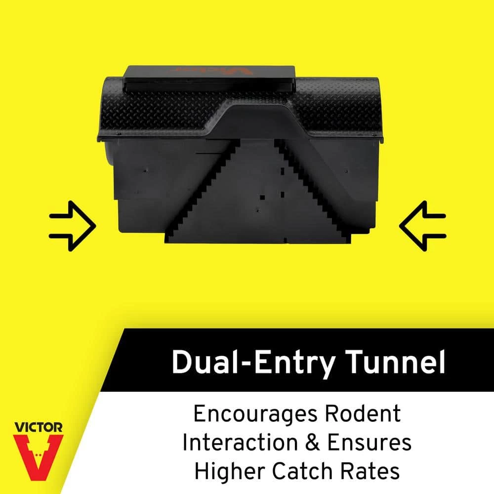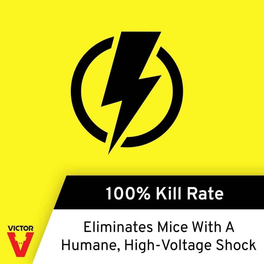 The Victor Multi Kill Electronic Mouse Trap is the most advanced rodent control system available in the market and recommended by professional exterminators for its 100% efficacy. The latest innovation in electronic rodent control, the Victor Multi-Kill Trap delivers a high-voltage shock to eliminate up to 10 mice per setting. Two points of entry with a lab tested staircase design, lead mice into the Shock N Drop Chamber. This chamber’s patented 3-plate design senses the mouse’s presence and sends a high-voltage shock to kill mice in less than 3 seconds at a 100% kill rate guaranteed. That means no escapes ever. After the mouse expires, the Shock N Drop Chamber automatically rotates and deposits the mouse in the collection drawer, keeping it hidden from sight. The Victor Multi Kill Electronic Mouse Trap automatically resets to capture the next mouse. The collection drawer holds up to 10 mice before it has to be emptied. Fully automated, the trap has the ability to eliminate your rodent problem in just one night. Safe for kids and pets, the Victor Multi Kill Electronic Mouse Trap features a built-in safety switch that automatically deactivates the trap whenever its door is open. Additionally, its unique tunnel design makes all electrical components inaccessible to pets and curious fingers. Requires four C batteries (included).