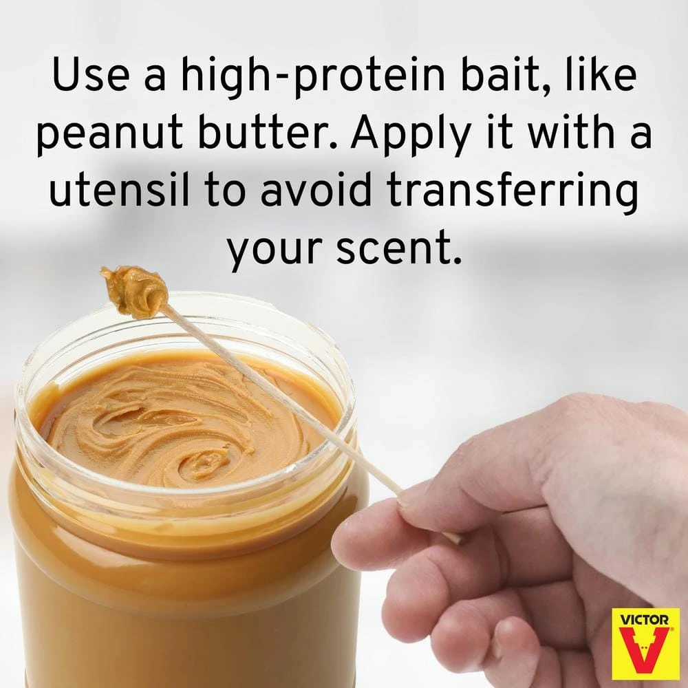 - Step 2: Bait the Trap – Apply a high-protein bait, such as peanut butter or hazelnut spread, to the metal bait pedal. Use a Q-tip, toothpick or other tool to avoid transferring your scent