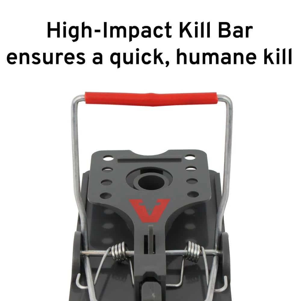 The Victor Power Kill Rat Trap is set and released with 1 simple click. This 1-step open and close mechanism also makes it easy to cleanly dispose of the rodent with no hand contact. The trap was design with a large trough, for easy baiting with any of their favorite foods. The Power Kills oversized pedal is easily activated both by rodent interest in food and through accidental contact as rats scamper across the floor to ensure maximum trapping. 1 a rodent triggers the pedal, the powerful jaw immediately springs closed for a quick, humane kill on contact.