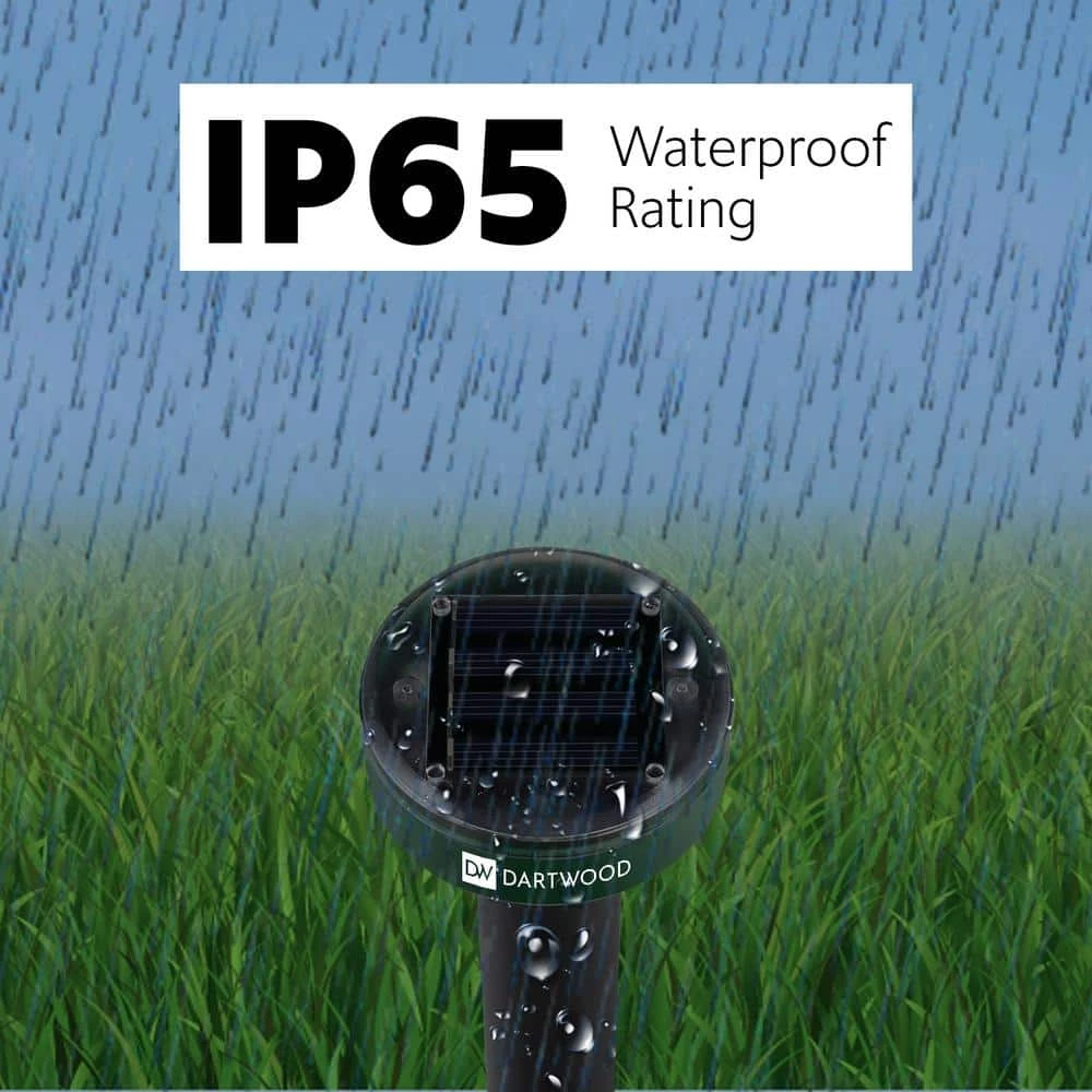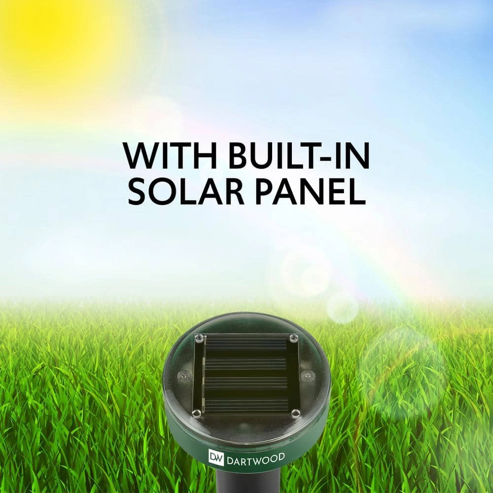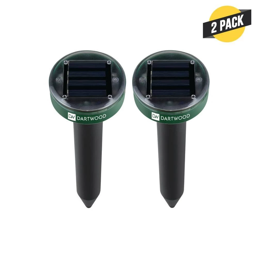 DARTWOOD Outdoor Solar Sonic Mole Repellent – Remove Groundhogs, Rats, Mice, Snakes and More From Your Gardens, Lawns and Yards (2-Pack). The 2-pack Solar Repellants from DARTWOOD will remove groundhogs, rats and mice from your gardens and lawns. These solar repellants have IP65 Waterproof rating with a built-in solar panel. The solar repellants will last up to 5-days with just 4-hours of solar charge. They produce sound waves up to 49 ft. and are weatherproof.