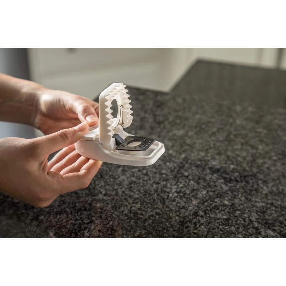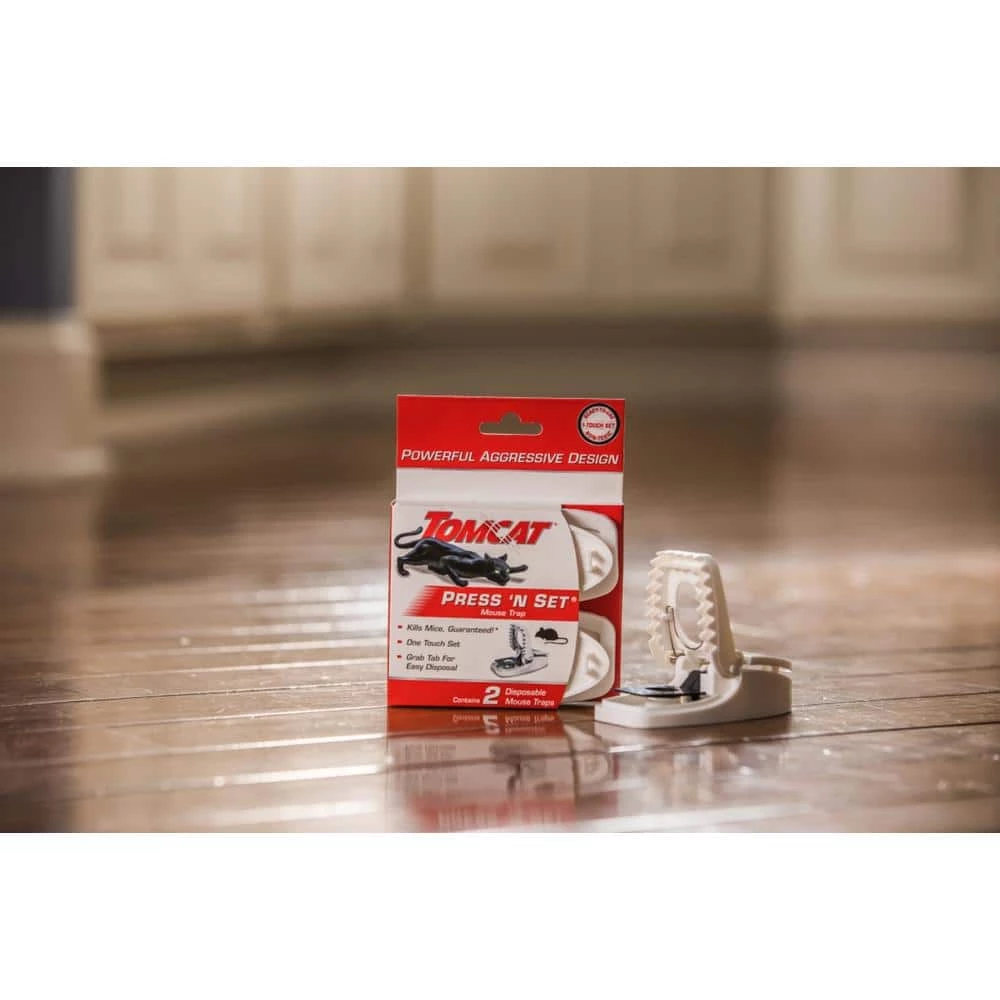 Tomcat Press ‘N Set Mouse Trap effectively kills mice thanks to its innovative design. Its press-to-set feature makes it easy to use, while its built in grab tab offers no-fuss and no-touch disposal of the rodent. Guaranteed (Satisfaction guaranteed or your money back) to kill mice, Tomcat Press ‘N Set Mouse Trap can be a powerful ally in your fight to get rid of rodent pests in your home. After baiting the trap, place it where mice are active. After catching a mouse, simply use the trap’s grab tab to dispose of the rodent.