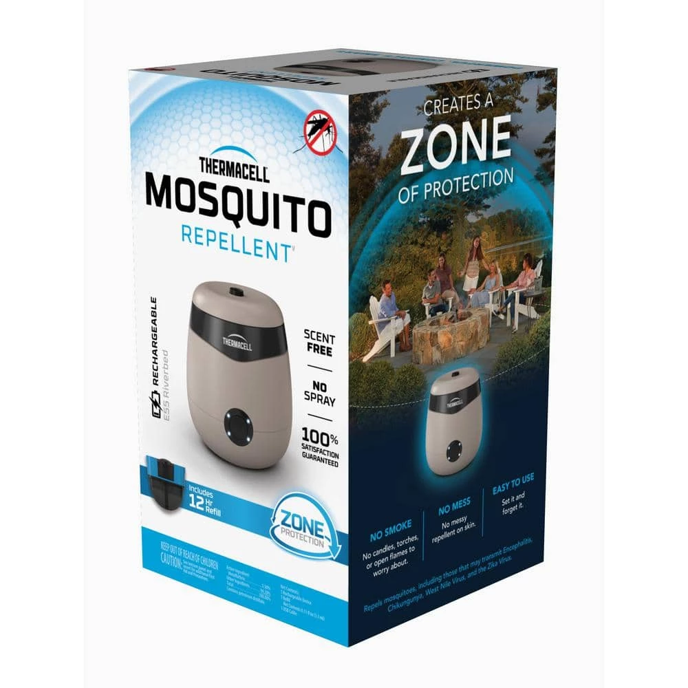Our most advanced repellent system ever, the rechargeable Thermacell E-55 Mosquito Repellent keeps mosquitoes away, without spray. Within-minutes, the system heats and activates our scent-free, invisible repellent, protecting outdoor spaces from mosquitoes. The E-Series is ideal for patios, poolside, decks, or just about any outdoor space. Its effectiveness is unmatched by candles or torches. Like all Thermacell repellents, the E-Series been evaluated by the EPA for safety and effectiveness and provides a 20 ft. Zone of Protection against mosquitoes. Rechargeable and long-lasting, the E55 comes with a 12-hour repellent refill cartridge and includes a USB cable for charging. The E-Series is incredibly effective – many times more effective than candles or torches. And it is environmentally friendly.