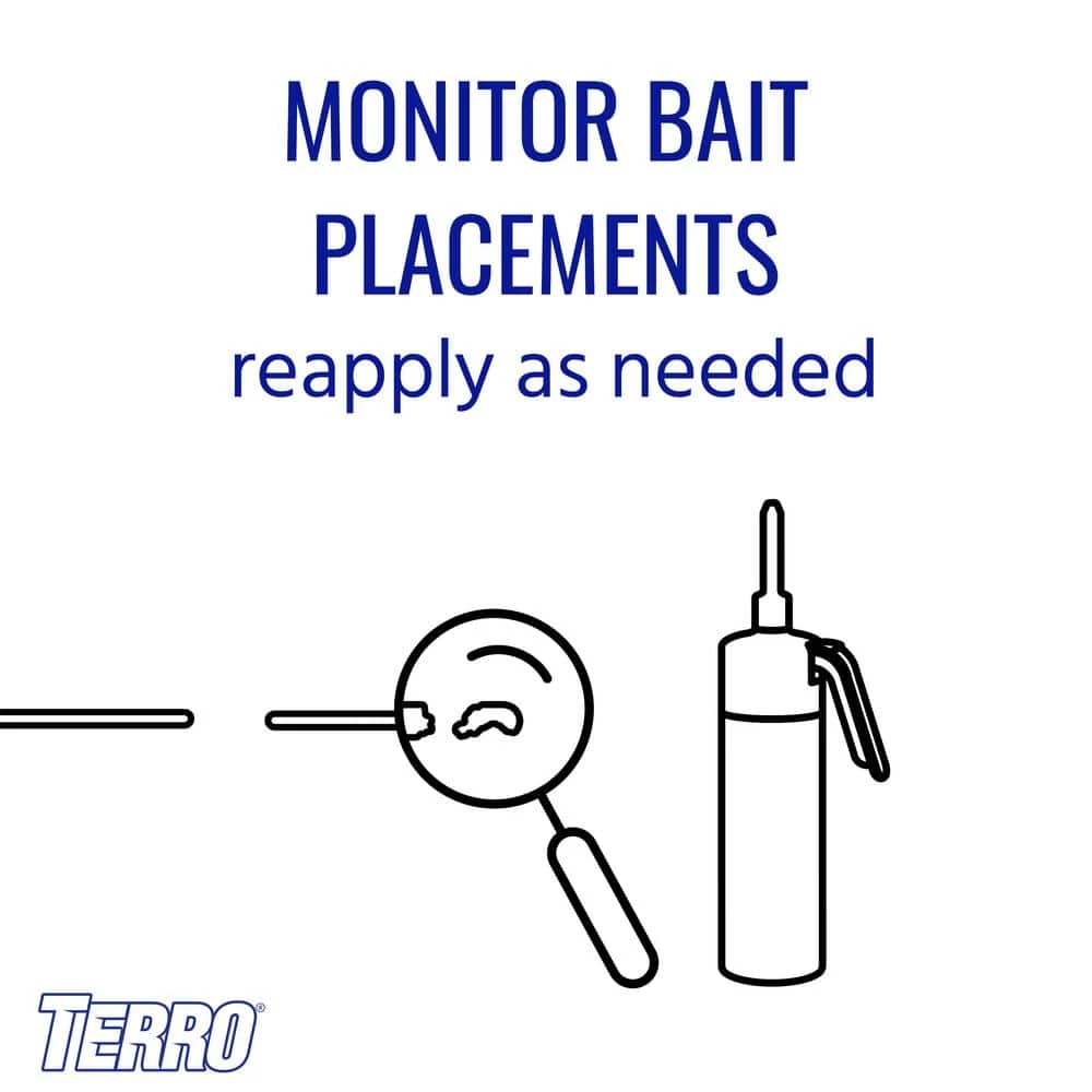 - Inspect bait placements periodically and reapply as needed