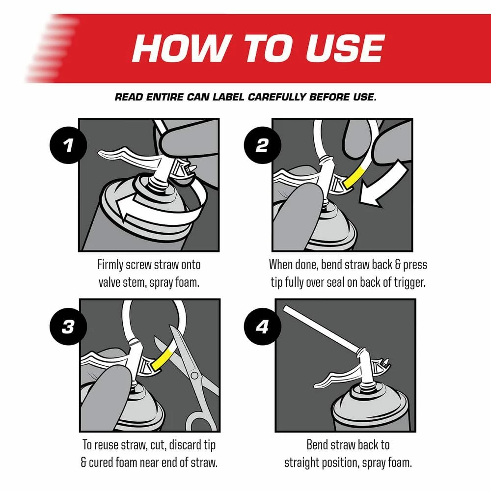 - Expanding foam provides a long-lasting, airtight and water-resistant bond to most building materials