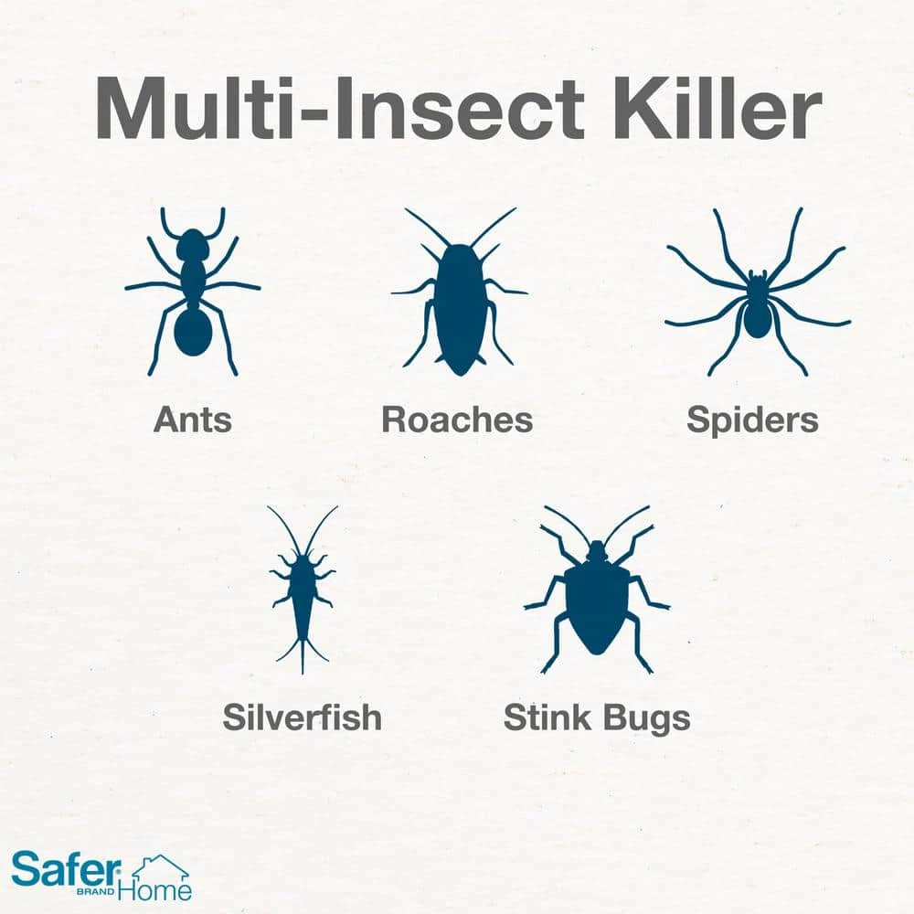 Don’t let uninvited pests invade your home – take control with Safer Home Ant, Roach & Spider Multi-Insect Killer Aerosol! This multi-insect spray is effective against a variety of household insects and kills ants, roaches, spiders, flies, silverfish, fleas, and more. The contact-kill formula works fast to kill 100% of ants, flies, and roaches within 3 minutes. It’s made with natural oils, including clove oil and cottonseed oil, and contains no harsh chemicals so it’s safe for use around children and pets when used as directed. The aerosol spray and contains no CFCs so it’s ozone friendly.For your convenience, the aerosol spray bottle makes application a breeze. Holding the bottle 8-12 inches from the target, spray directly on pests until wet, but not to the point of saturation. There’s no residue to wipe up – the spray will dry without cleanup. It is perfect for use in pantries, behind baseboards, in cracks and crevices, around windows and doors, and in attics, basements, crawl spaces, and other areas of your home.Effective against: Ants (Argentine, Pharaoh), Cockroaches (American, German, Oriental, Smokey Brown), Spiders (House), Aphids (Green Peach), Beetles (Asian Lady, Black Carpet, Cigarette), Boxelder Bugs, Cat Fleas (adults), Earwigs (European), Flies (House, Stable, Red Fruit Fly Adults), Hornets (Bald Faced), Mites (Poultry), Mosquitoes, Moths (Clothes, Diamondback), Silverfish, Stink Bugs (Brown Marmorated), Ticks (Brown Dog), Wasps (Yellow Jackets)