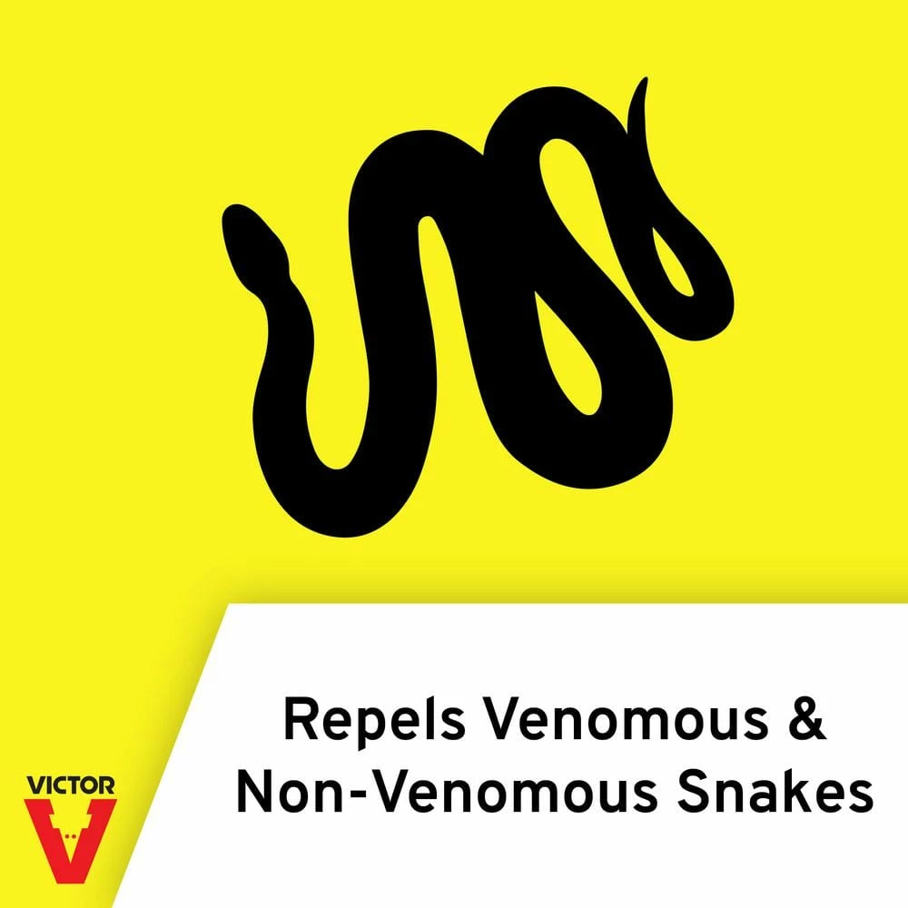 Victor Snake-A-Way repellent is proven to repel venomous and non-venomous snakes, including garter and corn snakes, from your property. The fast-acting formula uses a unique blend of ingredients that temporarily disrupt the snakes sensory receptors, causing them to flee the area in search of fresh air. For your convenience, Snake-A-Way Hose-End Spray is easy to use. Simply attach your garden hose tightly to the bottles sprayer head and spray on areas including barns, woodpiles, garbage cans and more. The 32 oz. bottle protects up to 500 sq. ft. When used as directed, the formula is safe to use around people, pets and plants- making it an ideal option to use around your home.