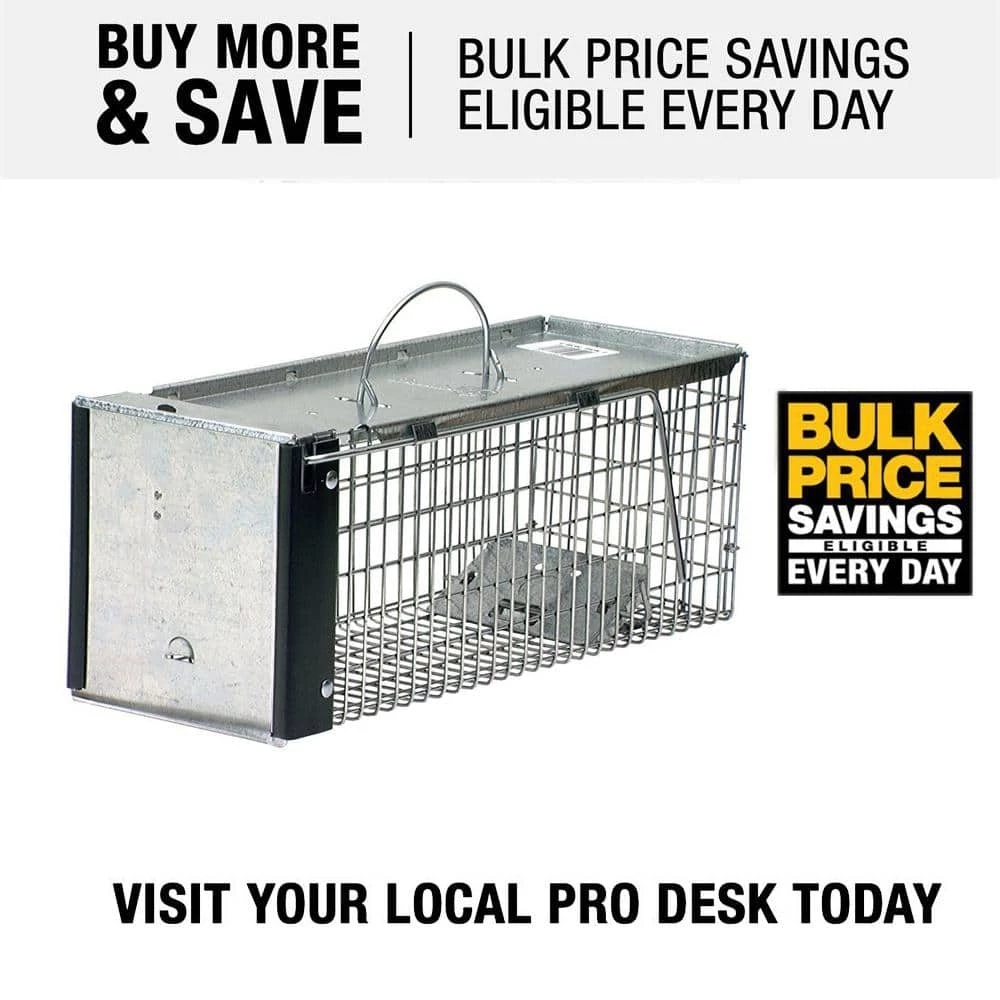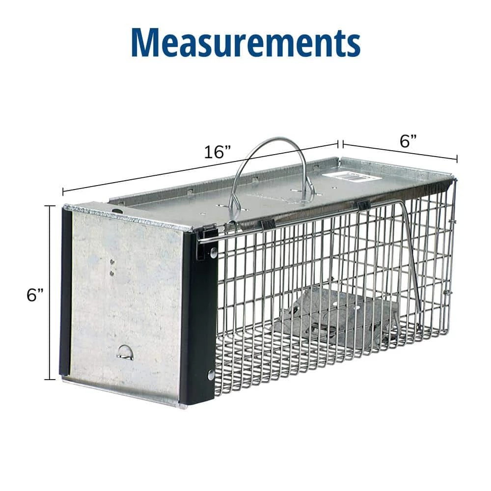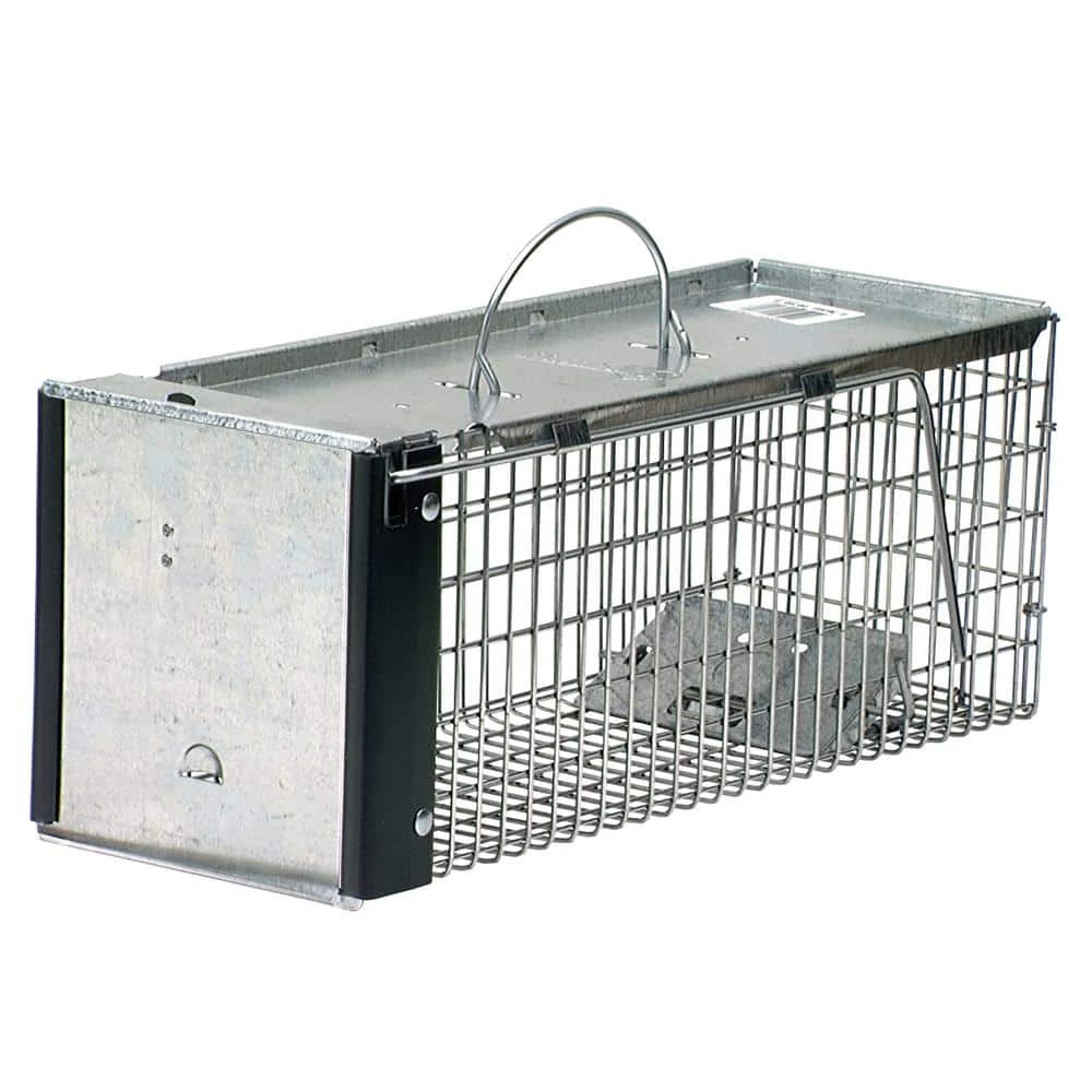 Ideal for trapping chipmunks, squirrels, flying squirrels, weasels and rats. The Havahart one door live chipmunk trap has a patented design that assures you of quick, safe catches and releases. This chipmunk trap’s structure helps prevent injuries to you or the animal. This patented Havahart one door trap is constructed of sturdy rust-resistant wire mesh with steel reinforcements for long life and galvanized for maximum resistance to rust and corrosion. Mesh openings are smaller than competing traps of comparable size to prevent escapes and stolen bait. Its patented design consists of a gravity action door and sensitive trigger to ensure quick, secure captures that target the specific animal size, eliminating undesired catches. Solid door and handle guard protect the user during transportation, while smoothed internal edges protect and prevent injuries to animals.