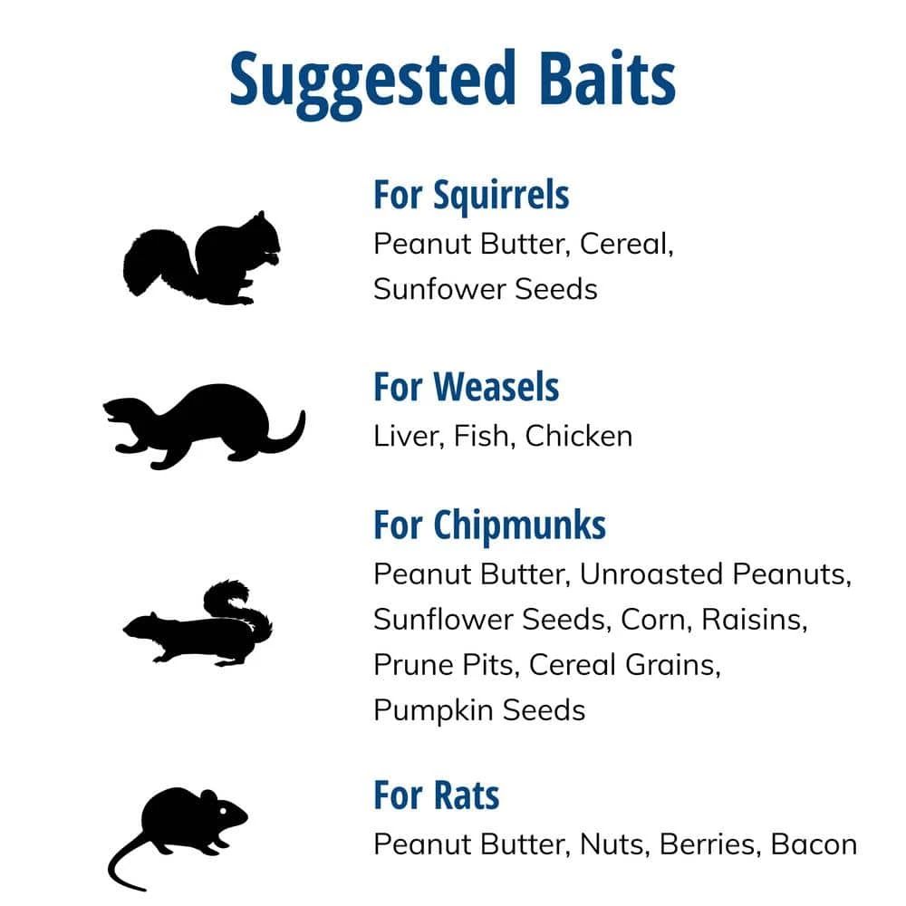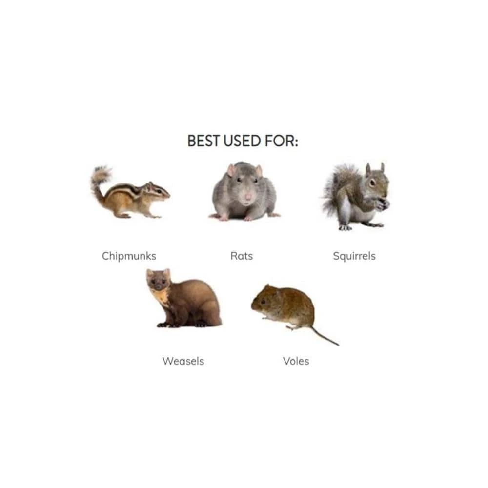 - Best used for chipmunks, rats, squirrels, voles, and weasels